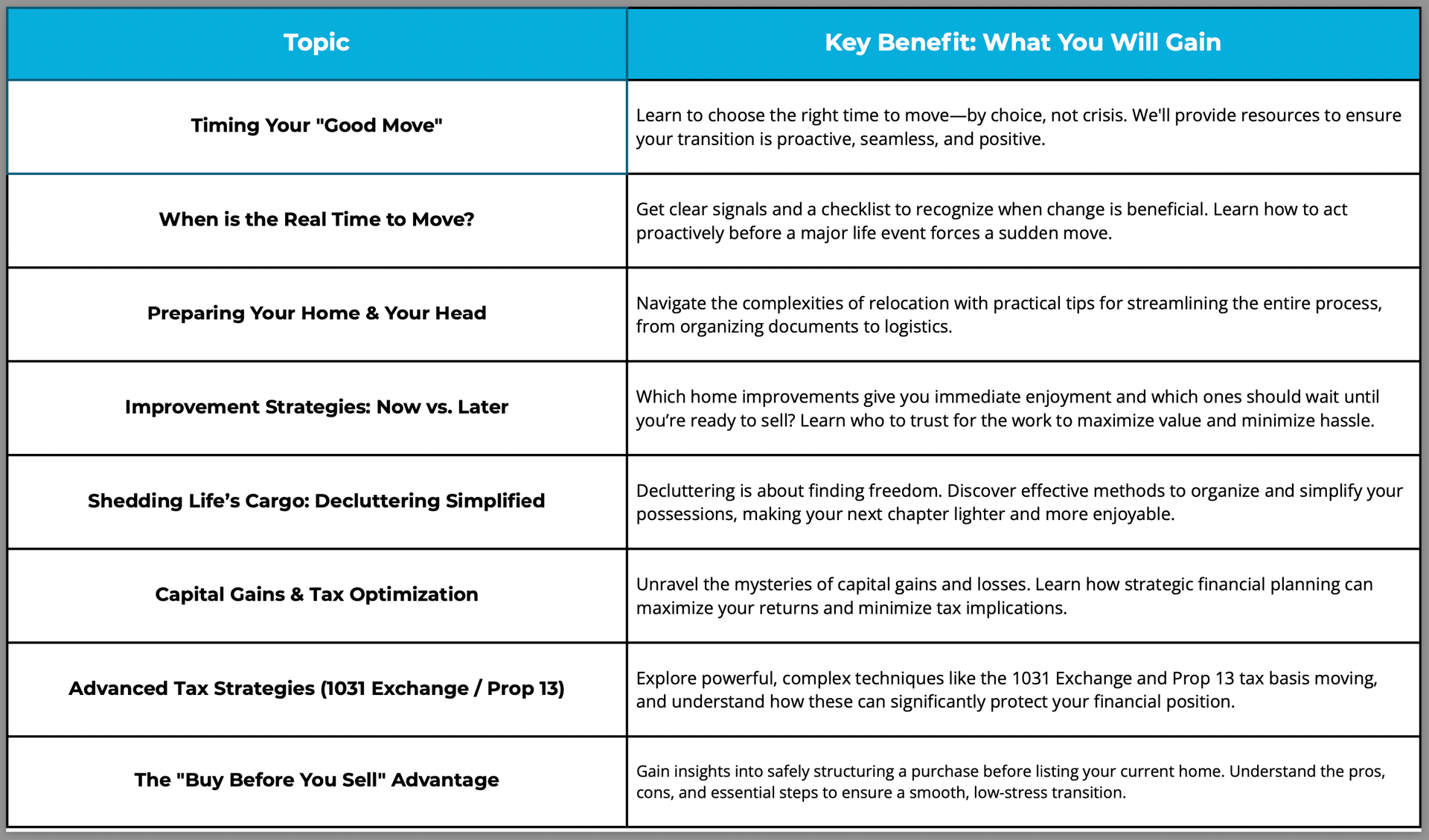 This is more than just a presentation; it's a planning session. You'll gain practical, expert wisdom from seasoned real estate advocates and have the opportunity to network with others facing similar decisions.