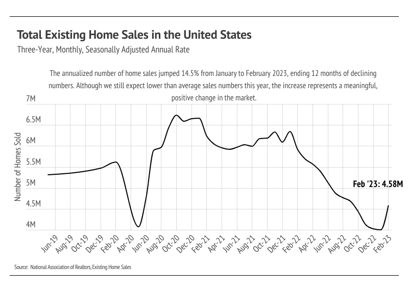 Despite the 30-year average mortgage rate being above 6% for the past six months, a significant number of buyers are finally coming back to the market. In fact, according to the National Association of Realtors (NAR), sales jumped 14.5% in February - the largest month-over-month increase since July 2020. This is a great sign, and it breaks the 12-month streak of declining sales.