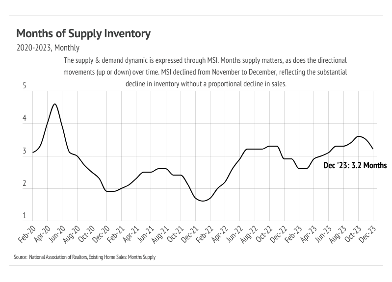 High mortgage rates soften both supply and demand, so ideally, as rates fall, far more sellers will come to the market. Rising demand can only do so much for the market if there isn’t supply to meet it. Unlike 2023 inventory, 2024 inventory has a much better chance of following more typical seasonal patterns.