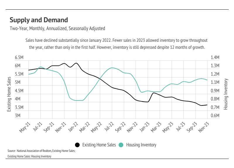 High mortgage rates soften both supply and demand, so ideally, as rates fall, far more sellers will come to the market. Rising demand can only do so much for the market if there isn’t supply to meet it. Unlike 2023 inventory, 2024 inventory has a much better chance of following more typical seasonal patterns.
