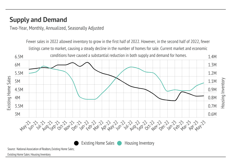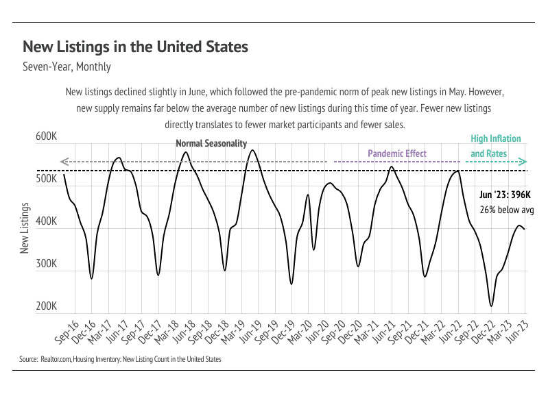 As buyer competition has ramped up and sellers are gaining negotiating power, sellers are receiving more of their listed price. In January 2023, the average seller received 95% of list price compared to 105% of list in June. Inventory will almost certainly remain historically low for the year, and the market will remain competitive in the third quarter.