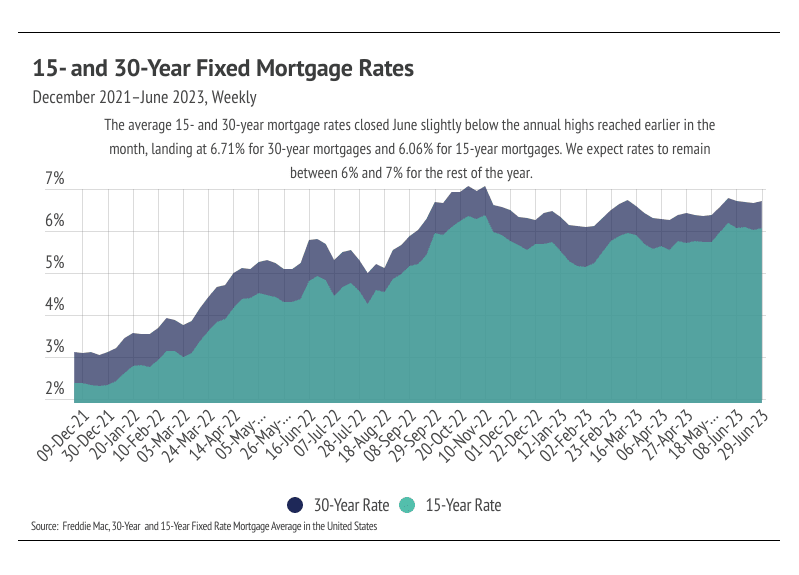 According to the National Association of Realtors (NAR), the median duration of homeownership in the United States was around 13 years in 2020. But let’s say, for the sake of example, we believe that number is no longer accurate, and it’s really more like five years. If five years is the median duration of homeownership, that means that pandemic-era buyers and refinancers likely won’t even start to consider reentering the housing market for at least another three years. It should be noted that five years is most likely generously low, particularly because the high mortgage rates (6.71% at the end of June) are disincentivizing homeowners who already have low rates from selling and buying a new home. As a result, low inventory is here to stay in most of the U.S., especially in highly developed areas where land for new housing is hard to come by. Additionally, mortgage rates will likely take three years to contract in a meaningful way as the Fed continues to raise rates in an effort to combat inflation.
